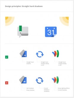 Behance曝光了Google的视觉设计手册,Sina上正好有翻译,拿过来共享一下。有几个地方还是值得看看的,摘录几篇。几何图形、保持正面、直线阴影、调色原理、调色标准、配色组合、配色变化、背景标准、icon像素
