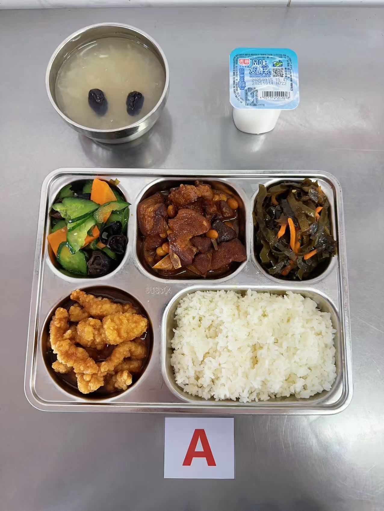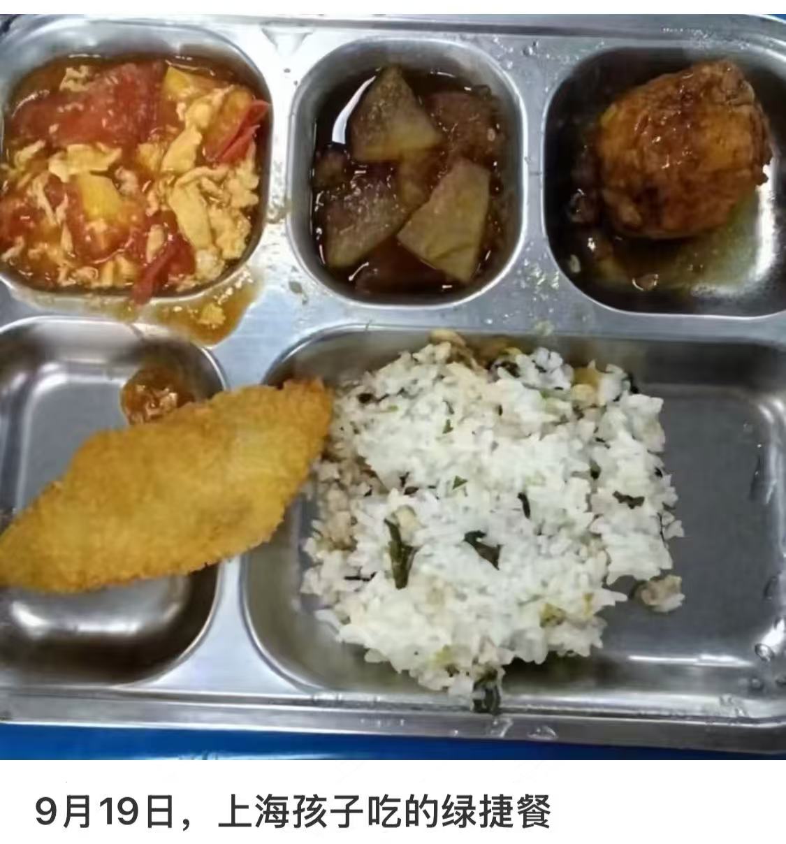 陪餐的时候长这样,尤其是鱼排和狮子头这款,和偶然xhs上看到的同一周绿捷某次的荤类搭配一模一样,一看就是冷冻肉类做出来的。让人揪心,两个三年级的班同时都开始和学校交涉了,后来知道还有另外一个三年级班也参与了。