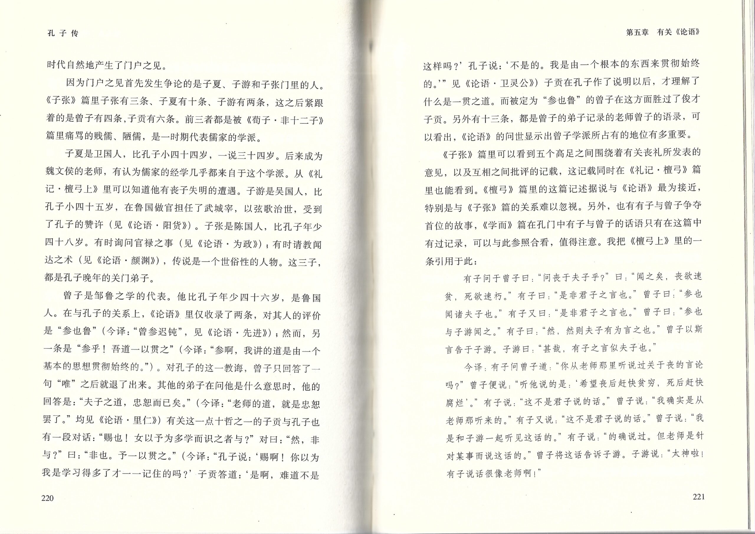 最后写的孔子的弟子和论语的起源。明显能感觉到作者认为孔子是把颜回作为自己的传人地位的,可惜天不遂人愿,真实的孔子思想其实在颜回这里已经失传了。留下来的弟子们做官的做官,立门派的立门派,于是有了子张/子游/子夏的斗争,然后是曾子/有子及其徒弟们,最后到了孟子/荀子这里,道基本就消失殆尽,犬儒横行,法则的社会开始大行其道,论语也就这这种环境下诞生了。